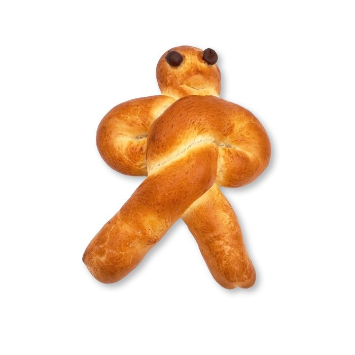 Zutaten: WEIZENMEHL, Wasser, Backhefe, BUTTER 3.5%, Milchpulver (MILCHSERUMPULVER, Dextrose, BUTTERFRAKTION), EIER, jodiertes Speisesalz, Backmittel ((WEIZENMEHL, Dextrose, Emulgator (E472e), GERSTENMALZMEHL, Stabilisatoren (Calciumphosphate), Citrus-Fruchtfasern, Enzyme, Mehlbehandlungsmittel (Ascorbinsäure)), GERSTENMALZEXTRAKT, Augen ((Vanillecrèmepulver (Zucker, VOLLMILCHPULVER, modifizierte Maisstärke, Geliermittel (E450, E339, E516), Verdickungsmittel (E401), Aroma, Farbstoff (E160a), Kakaopulver, pflanzliche Fette (Kokosnuss, Palmkern, Palm, Sonnenblume, Raps), Emulgator (SOJALECITHIN))